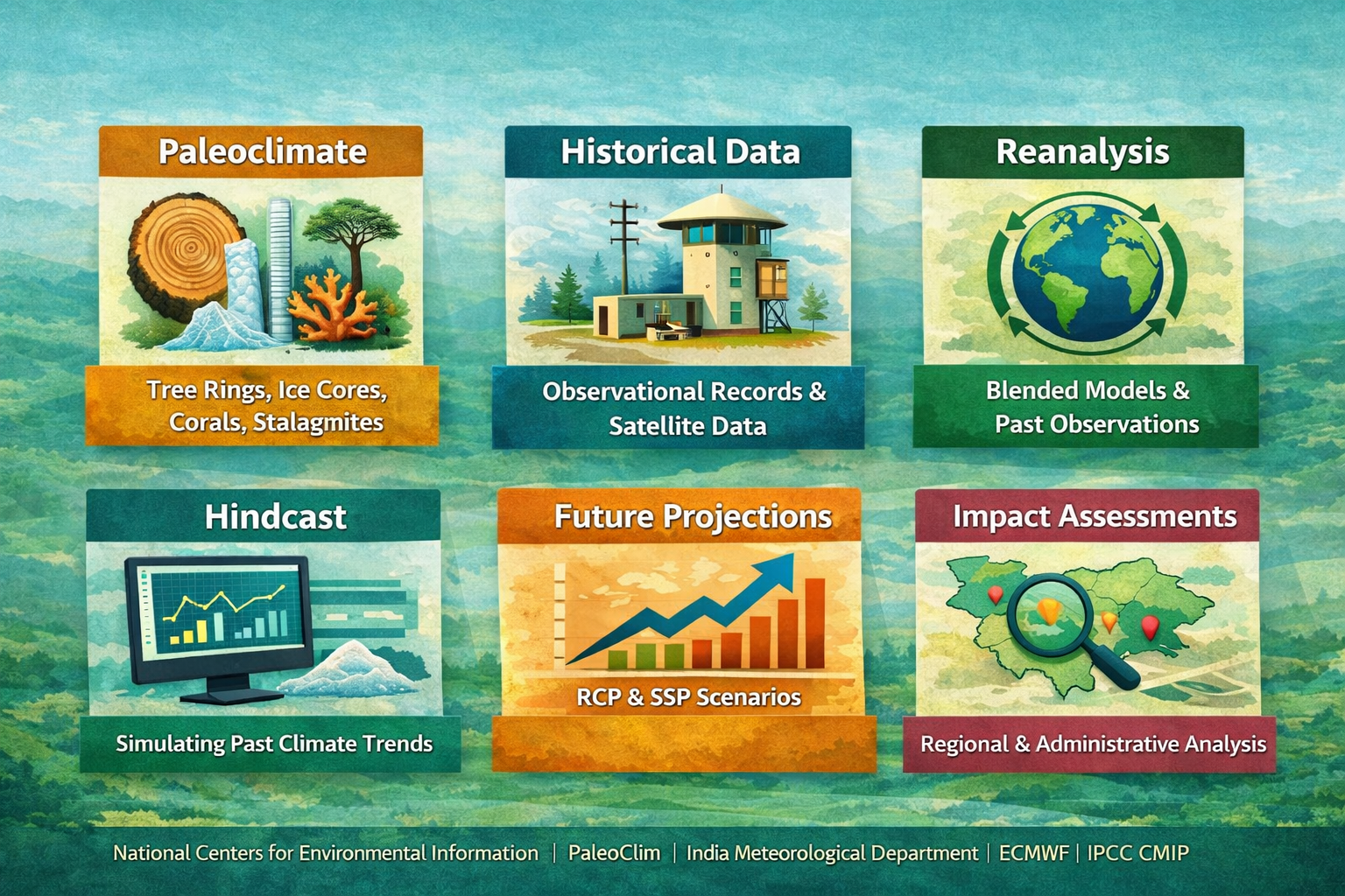 "Understanding climate change impacts by analyzing historical records, real-time observations, and future projections through reliable climate data."; and so on...